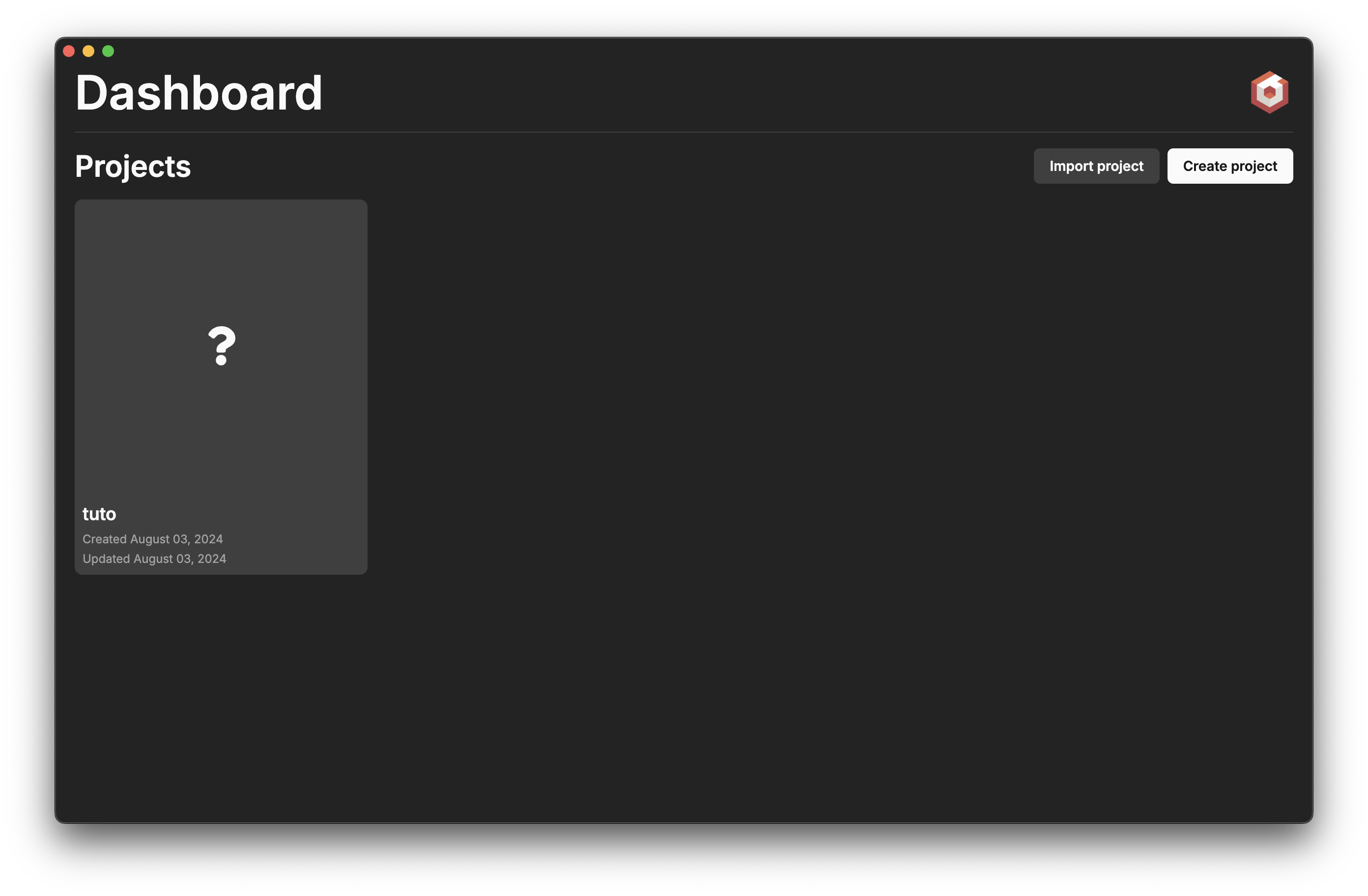 The dashboard is the place where you can create, open, and manage your projects.