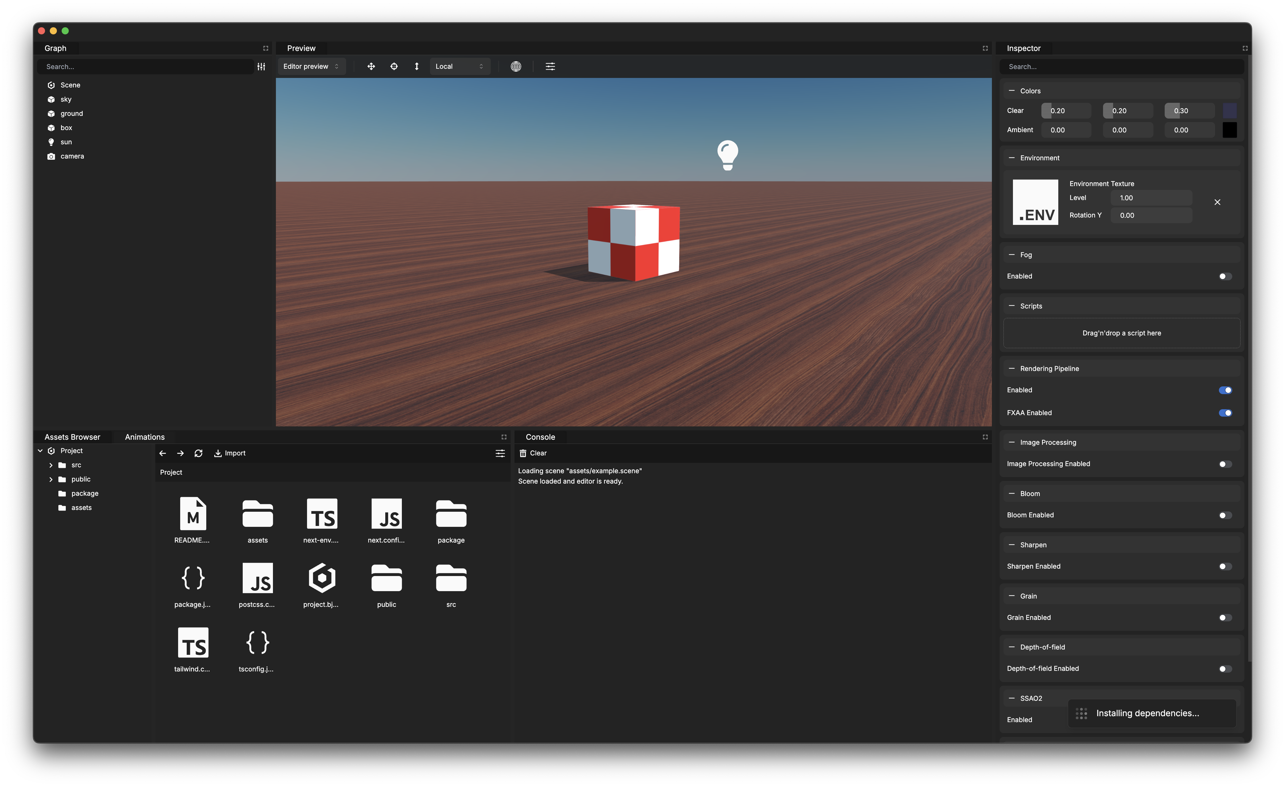 Each time a project is opened, the editor will update all dependencies by itself using the selected package manager. This step is mandatory and cannot be skipped.